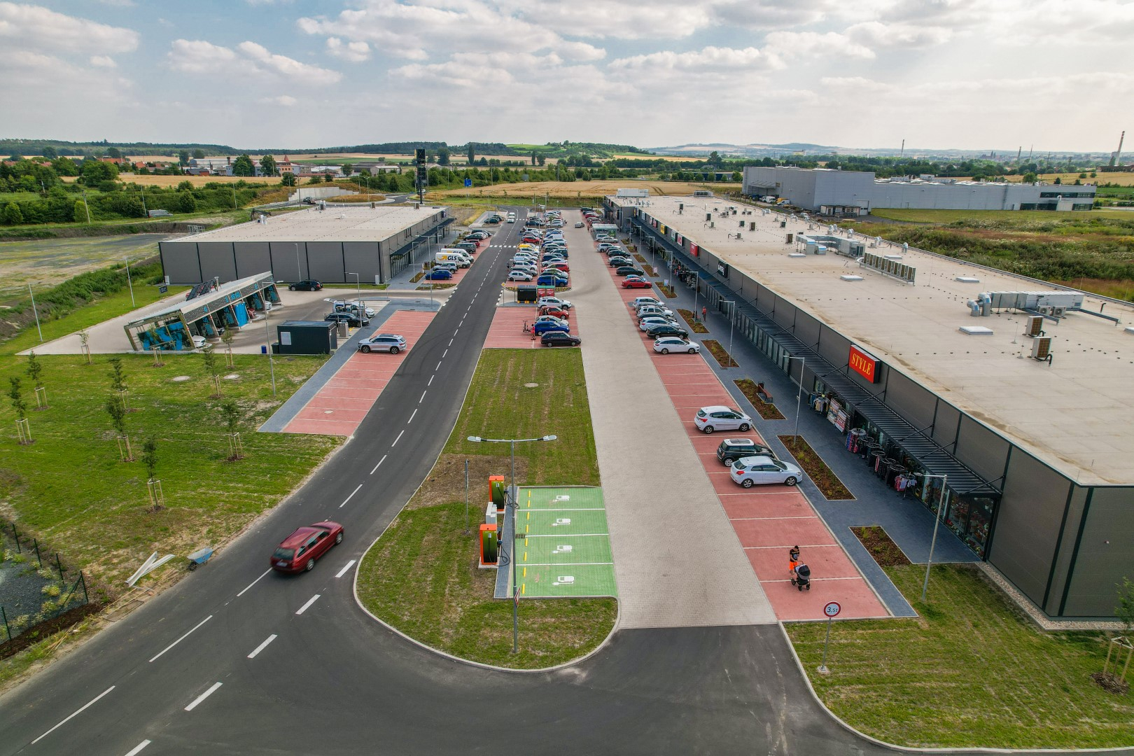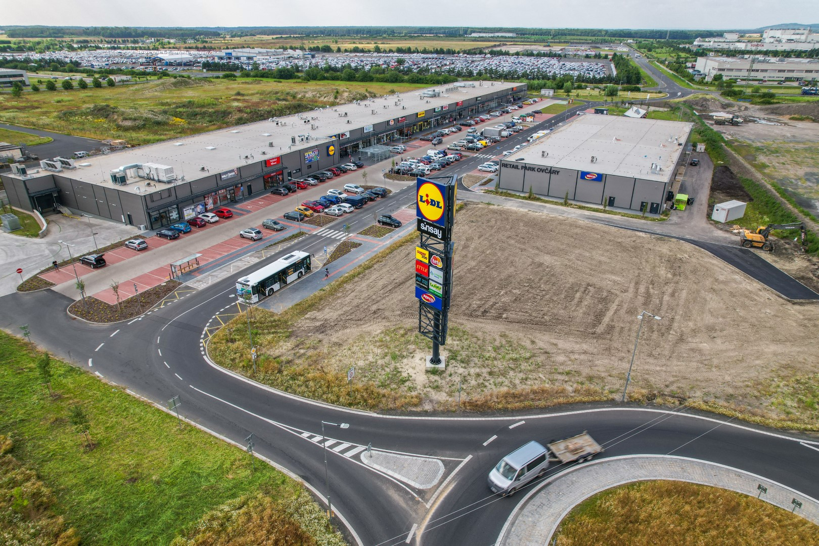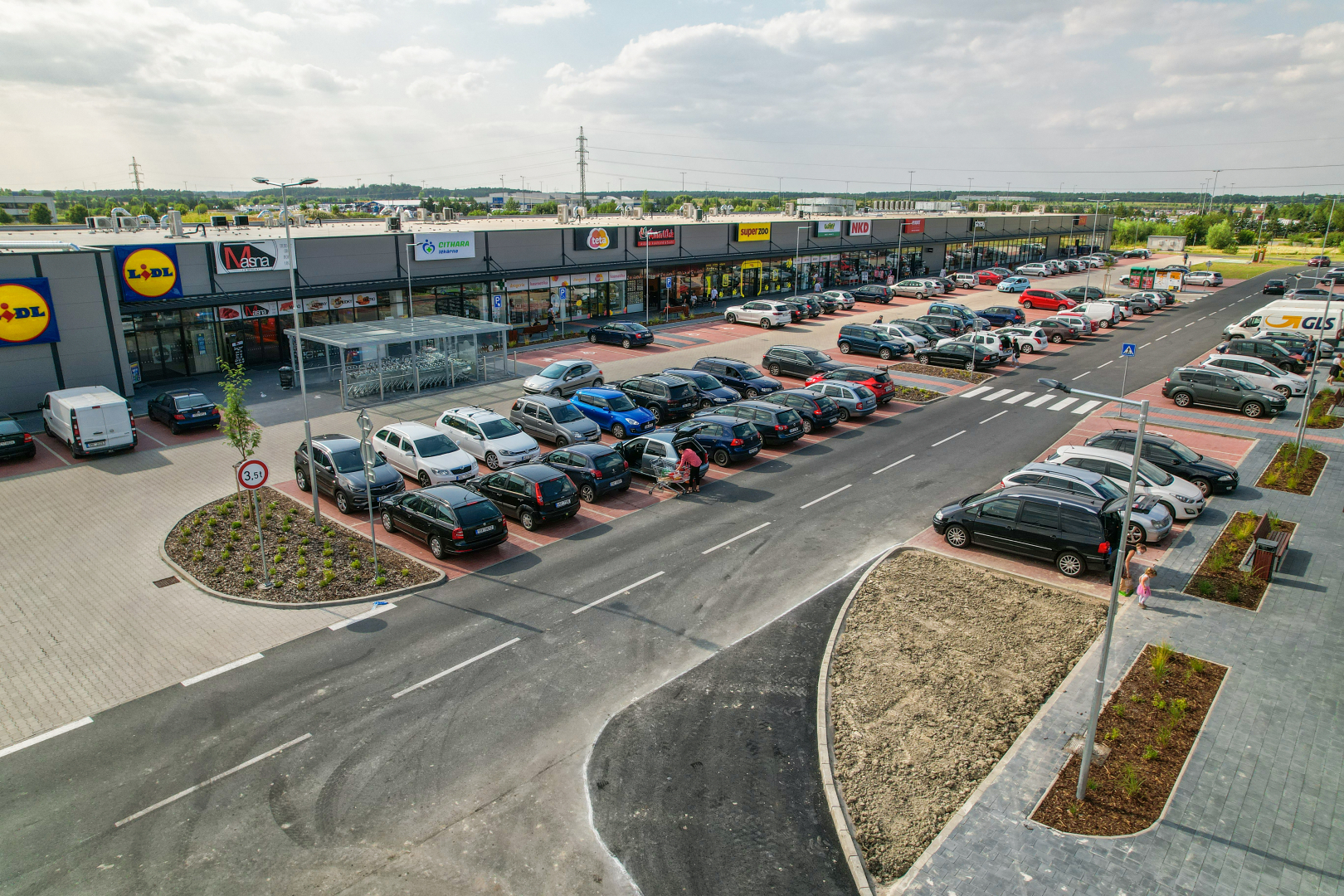 V Ovčárech kousek od Kolína jsme zrealizovali větší retail park, ve kterém vznikly jednotky pro LIDL, SINSAY, PEPCO, SUPER ZOO, drogerii TETA, lékárnu, řeznictví ZEMAN, WIKY hračky, NKD módu, trafiku, jednotky pro vybavení domácností a textilie spolu s automyčkami a výdejními zásilkovými boxy.